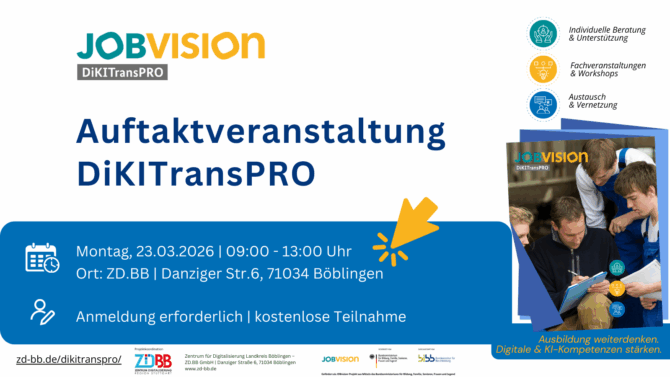 Das neue JOBvision-Projekt DiKITransPRO unterstützt KMU im produzierenden Gewerbe sowie Handwerksbetriebe in der Region Stuttgart dabei, duale Ausbildung praxisnah weiterzuentwickeln.